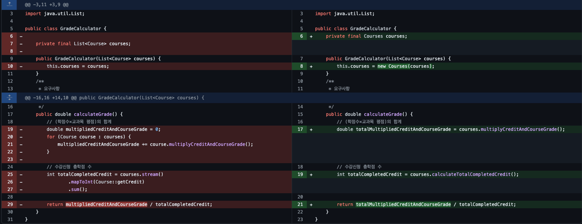 → 이 정보를 가지고 처리할 수 있는 책임들이 Courses라는 일급 컬렉션 밑으로 모두 이동함
