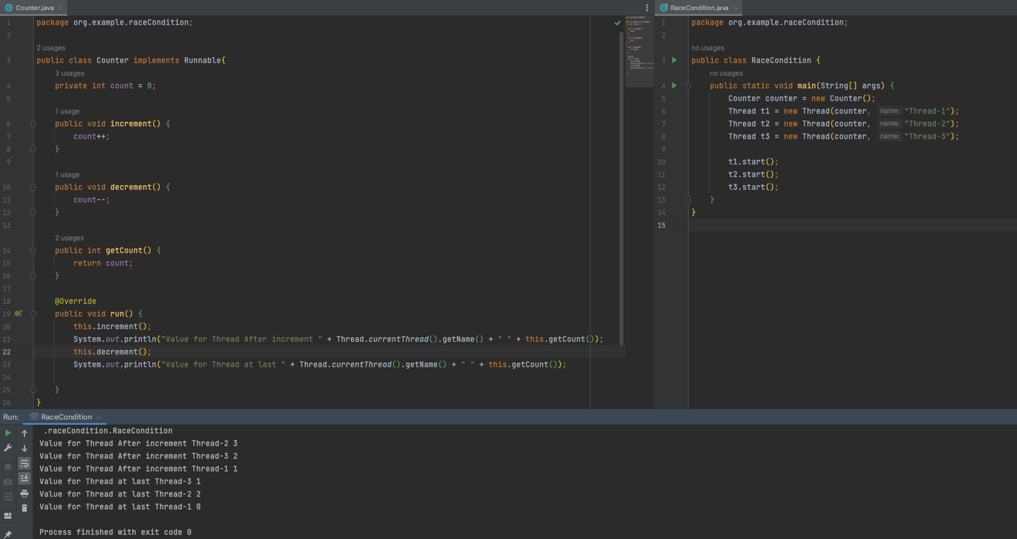 = 즉, 여러 스레드가 하나의 자원에 동시에 접근하기 위해 경쟁을 하면서 우리가 원하지 않는 결과가 나옴